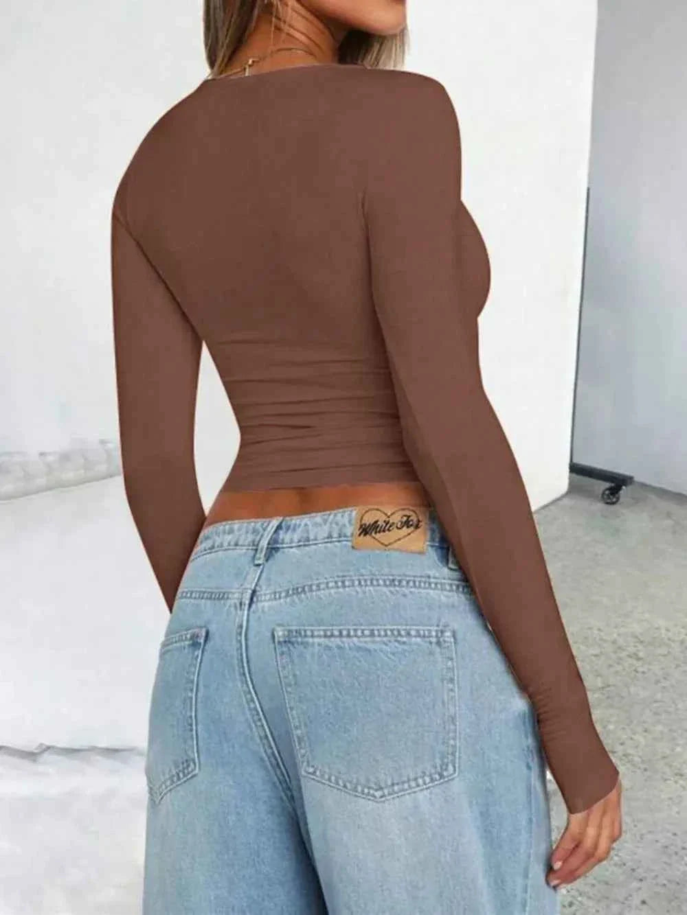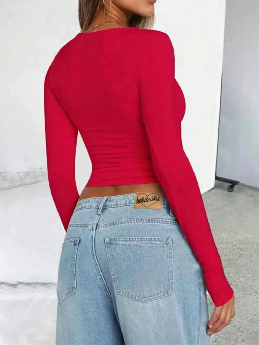 - Solid Color Round Neck Long Sleeve T-Shirt